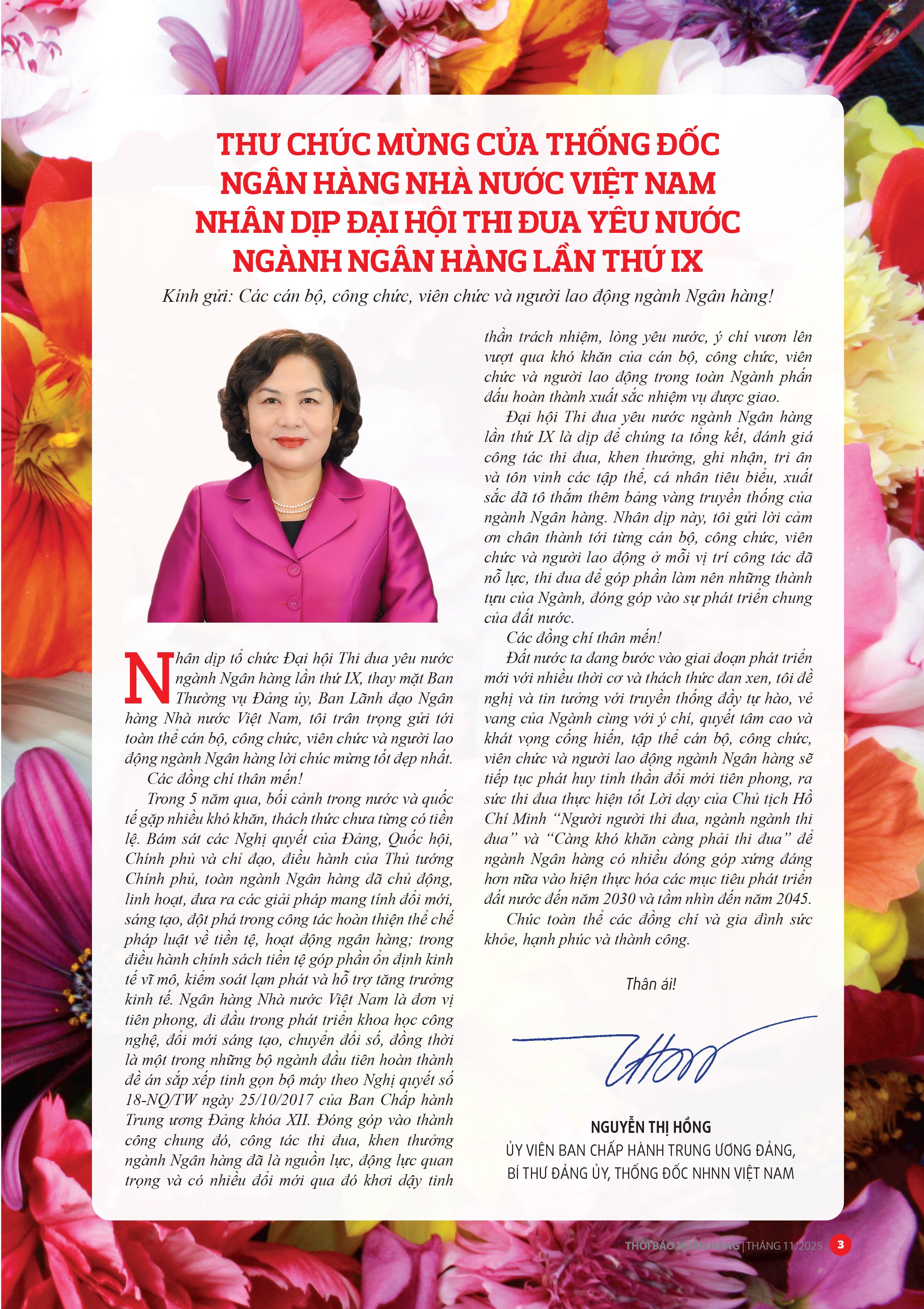 Thư chúc mừng của Thống đốc Ngân hàng Nhà nước Việt Nam nhân dịp Đại hội thi đua yêu nước ngành Ngân hàng lần thứ IX