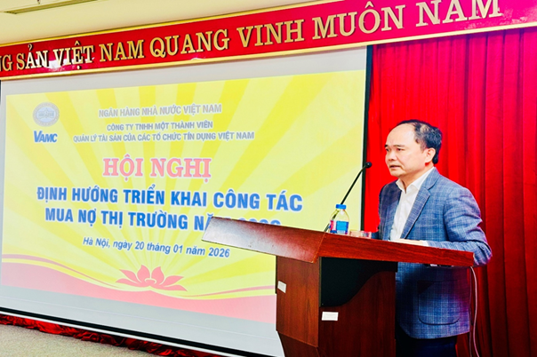 Ngày 20/01/2026, tại trụ sở 300 Tôn Đức Thắng, VAMC đã tổ chức Hội nghị định hướng triển khai công tác mua nợ thị trường năm 2026. Hội nghị nhằm quán triệt các nhiệm vụ trọng tâm, thống nhất kế hoạch hành động, qua đó tiếp tục phát huy vai trò của VAMC trong hỗ trợ các TCTD xử lý nợ xấu, góp phần bảo đảm an toàn hệ thống ngân hàng và thực hiện nhiệm vụ chính trị được Ngân hàng Nhà nước Việt Nam giao.